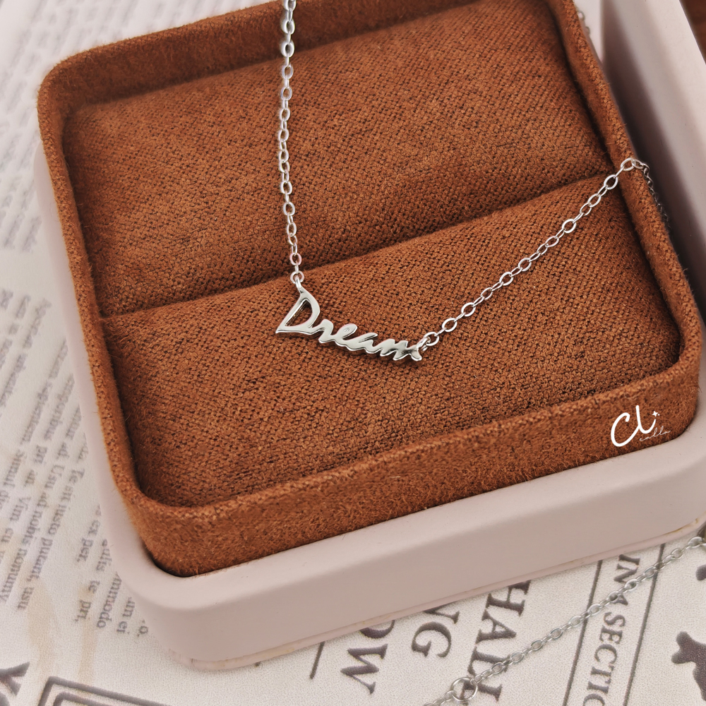 Dream Wish Necklace คือคำตอบที่ใช่สำหรับคุณ สร้อยคอเส้นนี้ถูกออกแบบในสไตล์มินิมอล พร้อมดีไซน์คำว่า “Dream” สื่อถึงความฝัน ความหวัง และสิ่งดี ๆ ที่คุณอยากเก็บไว้ใกล้ตัวทุกวัน