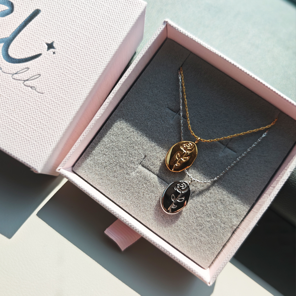 Rose Signature Necklace ถูกออกแบบในสไตล์ Minimal Elegant ที่ดูเรียบง่ายแต่ยังคงความหรูหรา จี้รูปวงรีช่วยให้ลายกุหลาบดูโดดเด่น และสามารถเข้ากับเสื้อผ้าได้หลายสไตล์ ไม่ว่าจะเป็นลุคหวาน ลุคมินิมอล หรือการแต่งตัวในชีวิตประจำวัน